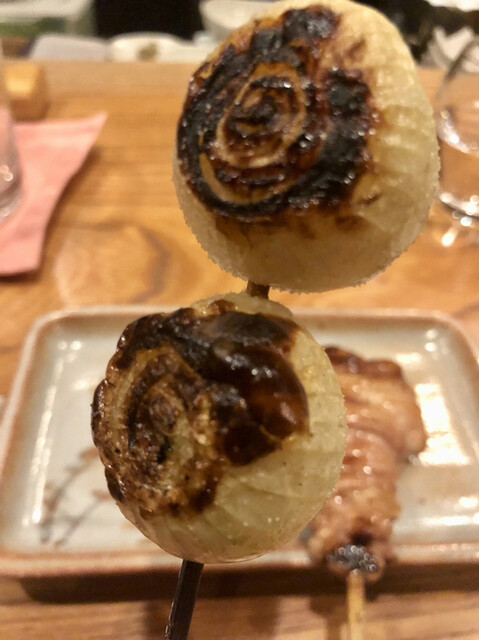 小玉ねぎは弱火の炭の上でじっくり時間をかけて焼いているので、中までトロトロなる。
