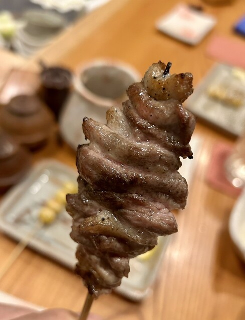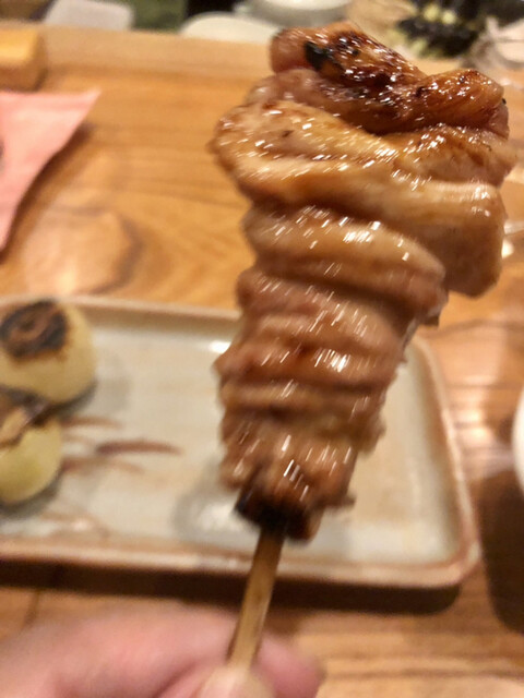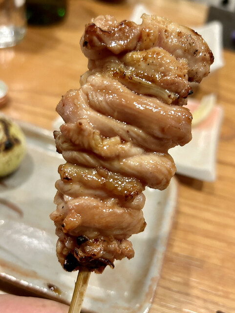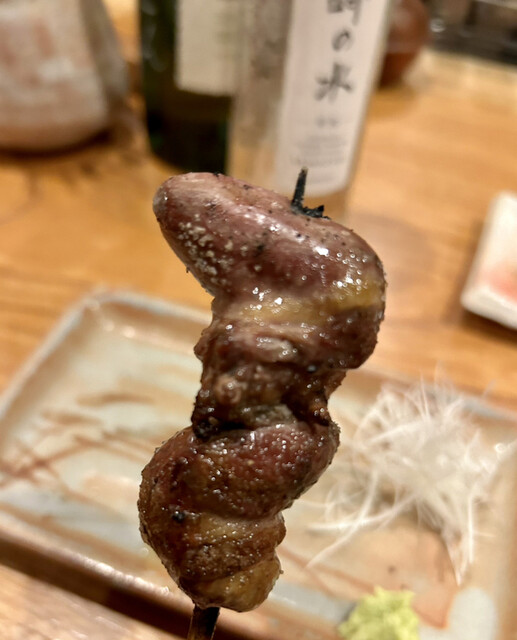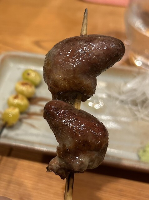 普通の焼鳥屋なら半分に切って血抜きしてから焼くのが普通ですが、とり喜のまるはつは敢えて血抜きしないで丸ごと焼く事でブーダンノワールのように鉄分の味がする絶品のハツでした。