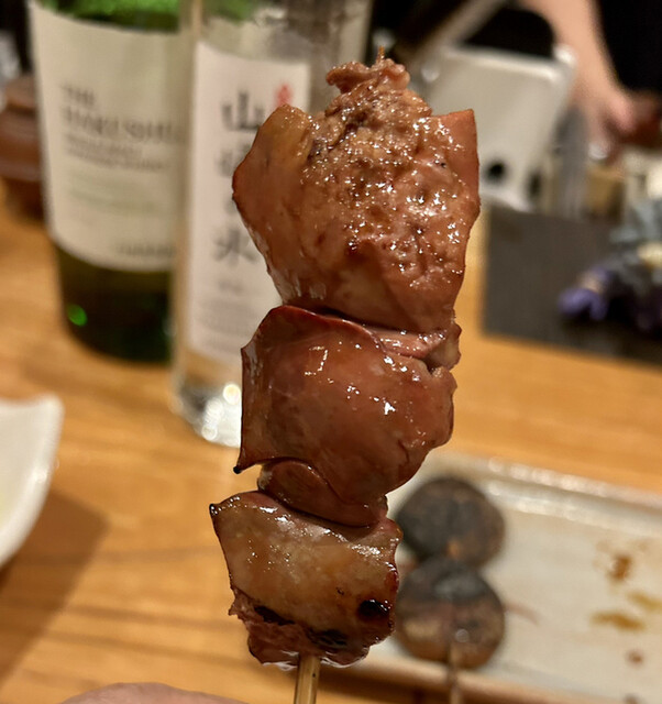 まるハツは心臓を丸ごとなので、肉の弾力のある歯応えの中に、血の旨味が包み込まれているので、毎回注文する。