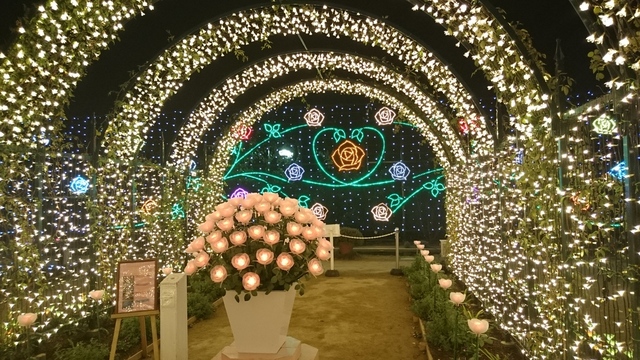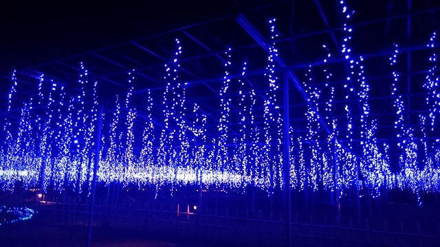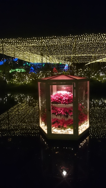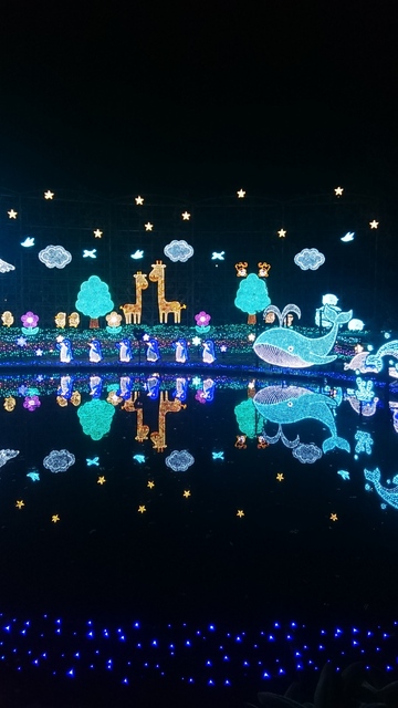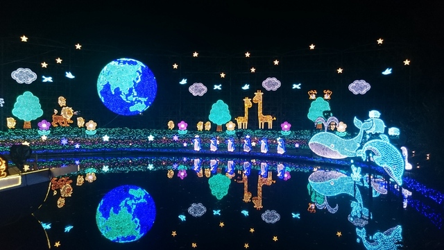 水中に浮かぶお花のイルミネーションとさまざまなシーンのイルミネーション