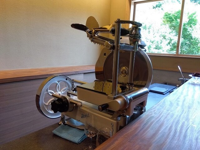 カウンターの中央には、スライサー界の「フェラーリ」とも称されるイタリア製BERKELのスライサーが鎮座。