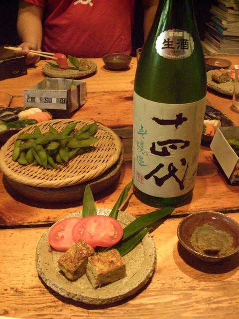 ではでは、始めましょう~~ビールと枝豆にて、下地を作りまして、ここから《十四代》を・・・