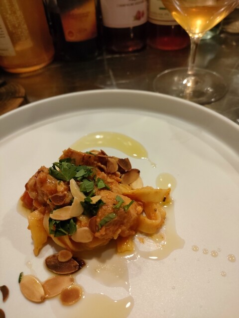 コースに合わせ、ワインはグラスでいただきました。グラスワインのメニューはなく、こんな感じとお願いして出していただく形式でお会計ドキドキしましたが、とっても良心的な金額でした。少しずついろいろな種類をいただけるお料理も楽しかったです。