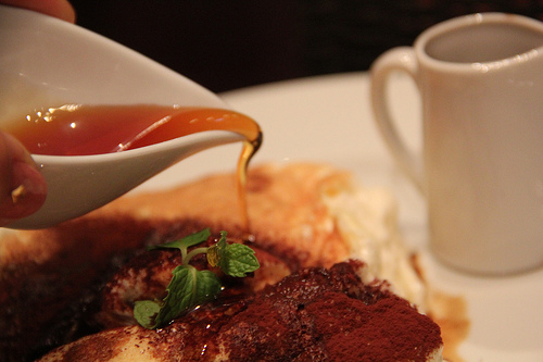エスプレッソコーヒーをかけてメイプルシロップをかけていただきます