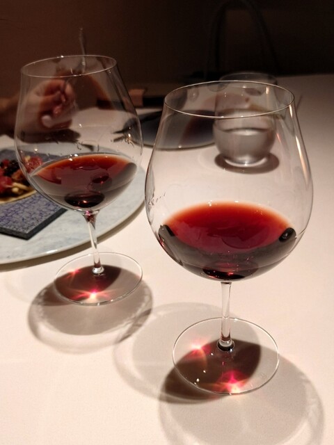 席に通されるとソムリエさんからご挨拶がありファーストドリンクはグラスでシャンパンをいただき、アルコールは料理に合わせたワインのペリングを所望。料理は7品のディナーコースです。