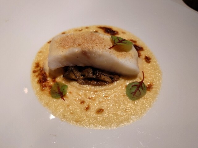 茄子の上に白身魚(魚種失念、舌平目だったかと)、絶妙の味のグリュイエールチーズソースが相まってこの一皿が一番美味しかった♪