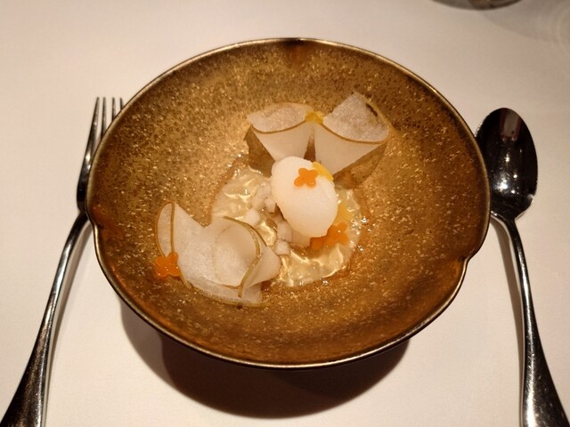 季節の和食材とフランス料理の融合、素晴らしいコース。高級フレンチは数えるほどしか経験がありませんが、味、雰囲気、コース構成、ホスタピリティー全てダントツでした。