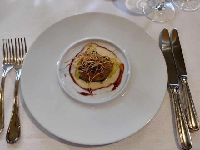 フォアグラとリードヴォーのポワレ リンゴソースとカシスのアクセント