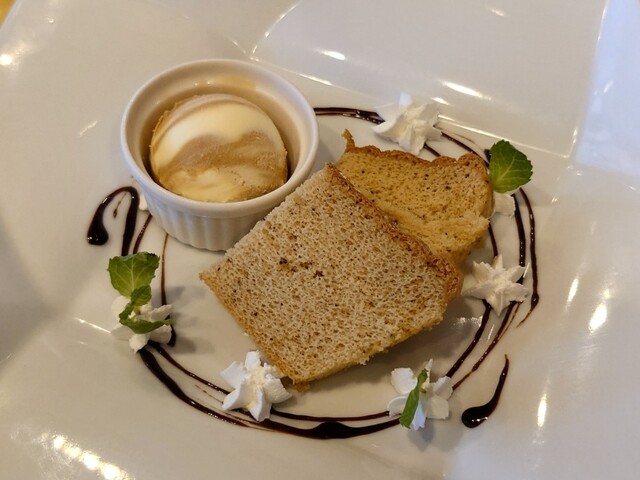 コーヒーキャラメル味のジェラートとシフォンケーキ