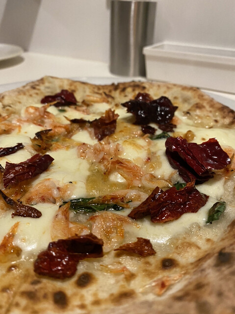 ピッツァはガンベロ(桜海老とペペロン、モッツァレラチズのピッツァ)とマリナーラスペッシャル