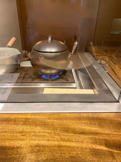 炭と鍋の前の席に着く。
