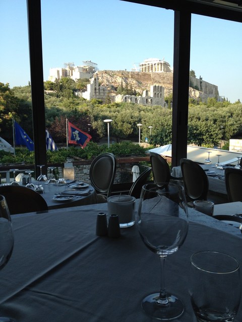 お食事時になると、フルオープンになります。窓からはアクロポリスの丘が