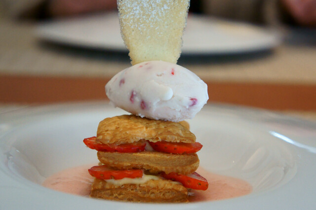 苺のミルフィーユ、ダマスクスローズのグラス 木苺のコンフィチュール