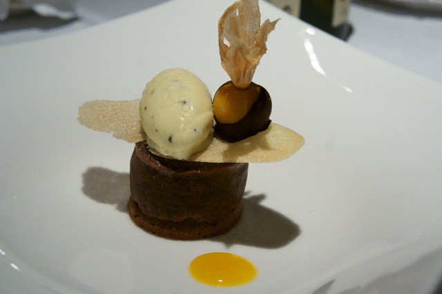 あまおう苺のミルフィーユとの選択。「あまおう」は、2回食べているのでコチラを選択。というか、フォンダンショコラが大好きなので他に選択肢はない。ピュア・カライブを使っていることも好印象。デセールの選択肢が少ないことは一つの弱点だとは思うけど、一つ一つの出来はとても良い。ほおずきも美味しかった。