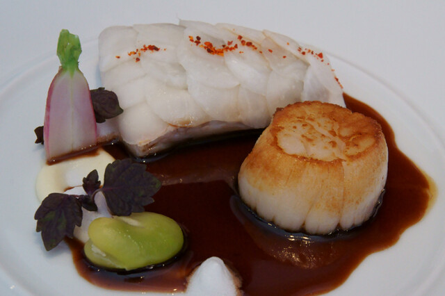 4-4)〈対馬〉『甘鯛』のエテュベ 野辺地の蕪の鱗仕立て 根室海峡の帆立貝 ソースヴァンルージュ