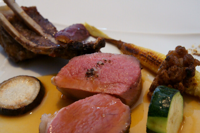 オマールは好みからすると、若干火入れが強すぎたかな。でも、クスクスのラタトゥイユ和えとトリュフ卵、更にオマールの出汁がたっぷりでているアメリケーヌとの相性は非常に良かった。