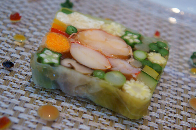 5-2)オマール海老と農園野菜のテリーヌ
