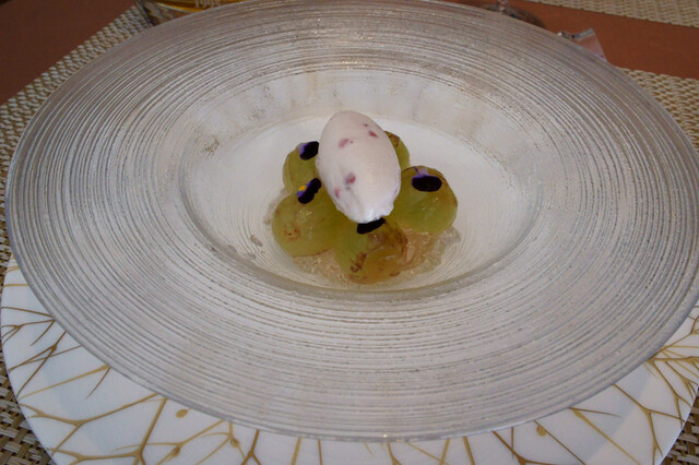 5-9)『ピオーネと夏すみれのコンポート』ダマスクスローズのグラス レモンバームのジュレ