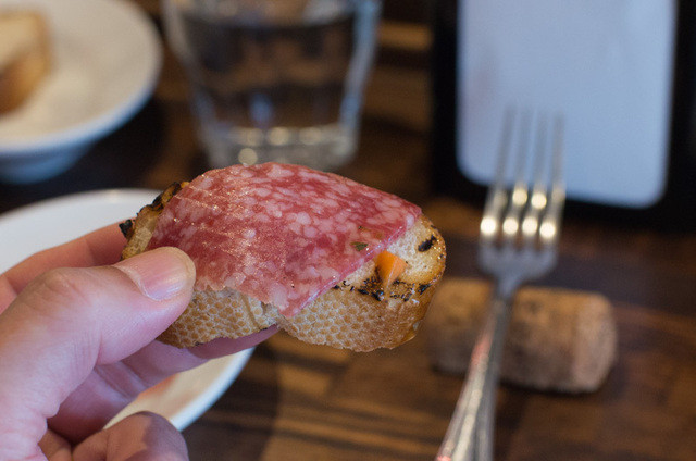 サラミをのっけて