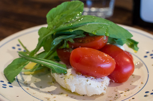 トマトがとても甘くて酸味もいい感じ。これにクセのない濃厚な羊のリコッタのマリアージュ