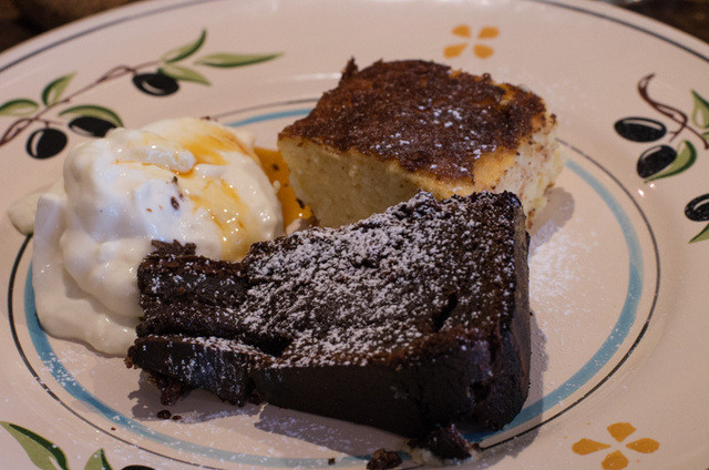 厚揚げくらい、しっかりと固まったリコッタチーズ、その分濃厚な味わいです。オレンジ?を煮詰めたソースがいい感じです。好みから言うと、若干焼き色強いかな。ビジュアルも三脚巴!(笑)。