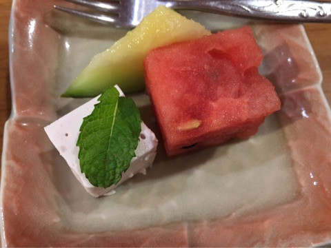 デザートはブルベリームース、メロン、八色スイカドリンクメニュー