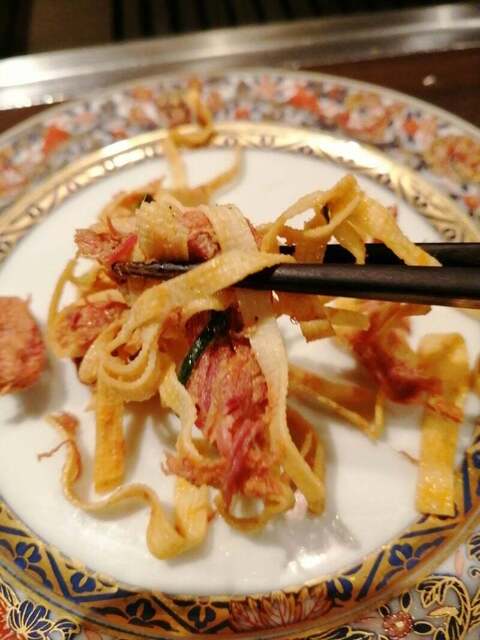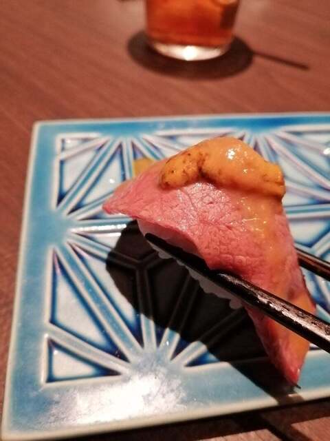 ハツモト(豚、コリコリ)は初めていただいた。。。脂つきのもので、こちらも冷凍せずに!軽く塩コショウしてある?味があって飲み込むのがもったいないしお酒が欲しくなるー 老舗、築地の吉岡屋さんの大根のべったら漬けと長芋に自家製きゅうりとたまねぎの漬物と自家製ピクルススティック! 和牛刺しは甘口醤油で!とろけるぅー 和牛テールと金目鯛の煮つけ白ご飯が欲しくなる(笑) 鹿児島黒牛レバニラ炒めまったく臭みなくて、きれいな味するし、柔らかーーーい 締めは冷麺か握りが選べ 握りはなんと和牛にぎり三種!!! フォアグラ レモンキャビア うに 冷麺 和牛モツ煮込みて、まさかの締めの食事の後にこれきたらまた飲みたくなっちゃうじゃん(笑)我慢できないし、アルコールもう一杯お願いしちゃったー 路地裏最中アイス