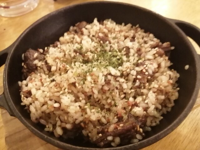 そして、締めの牛スジ入りガーリックライスが、鉄板焼屋さんで、でてくる締めのガーリックライスの味!!!
