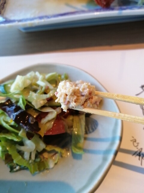 伊勢海老のサラダは、わたしの好きな味噌ドレッシングよりタルタル多めで、あれ?お味噌どこー?と探したらあった。