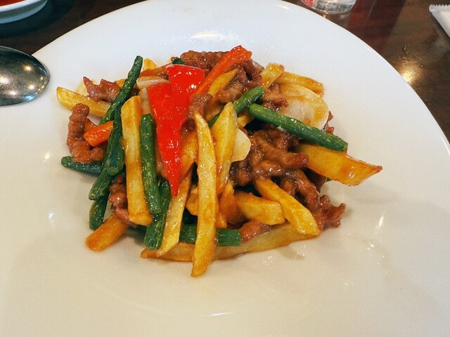 牛肉とジャガイモのカキ油炒めは、ジャガイモの食感もよく美味しい。
