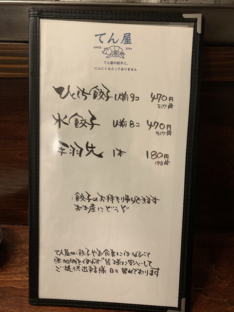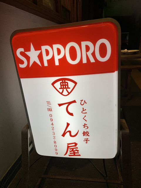 このトラベラーズの武田(弟)と、てん屋の大将のお兄さんが同級生ということで、お試しに餃子をBARのメニューとして焼いていたのだった。その後、トラベラーズは音楽一本でやれるようになりBARバンブーは閉店し、この餃子で評判を得た奈良君は独立し「てん屋」を開店、餃子は評判を呼び、店は大繁盛で現在に至るという感じだ。