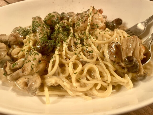 クリームパスタが絶品。そして豚肉のローストがカリッカリでジューシー!!熊本屈指のイタリアン!
