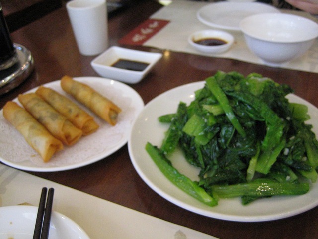 粥はなかったので、小籠包、春巻き、青菜の炒め、担担麺など。