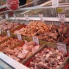 肉は非衛生的だけど、部位ごとに外に吊って売ってます。