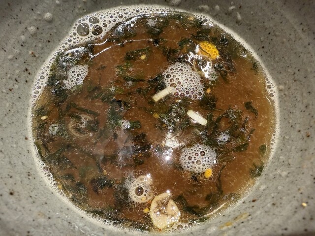 〆のお出汁割りもバラ海苔たっぷりで美味しい。