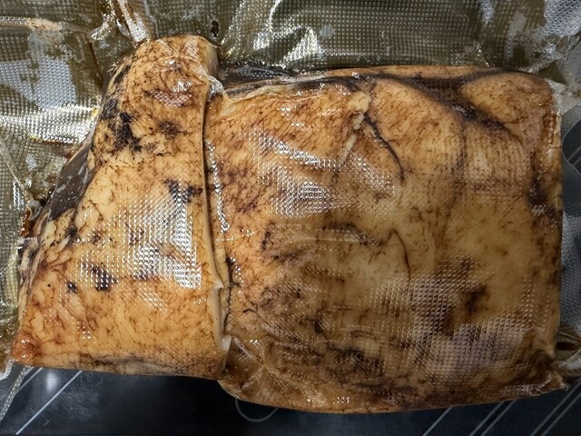 年末チャーシューは昨年までは「豚バラ」一択でしたが今年は選択肢が3つに増えたのでいつもの「豚バラ」(2500円)と「鴨ロース」(2500円)を予約して受け取りに行きました。
