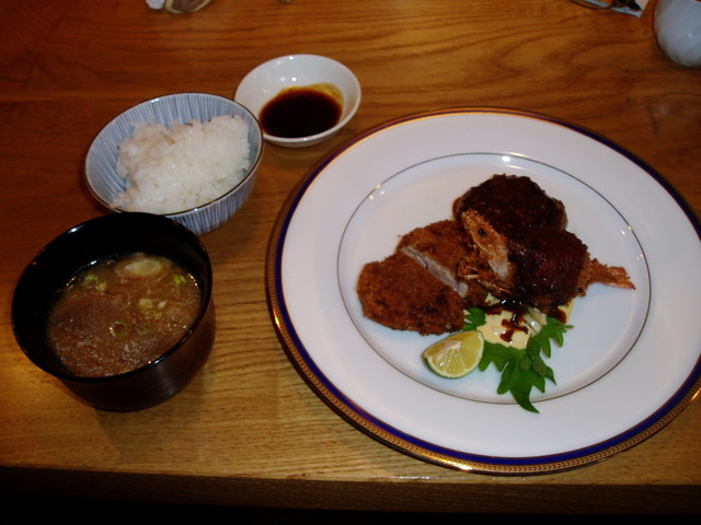 ヒレ豚カツは肉厚あって歯ごたえあり、別皿のソースに浸して食べると一層美味しく頂けた。