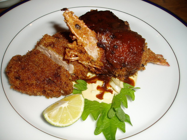 特に車海老の真ん中にポッコリ盛られたクリームコロッケが絶妙のお味。