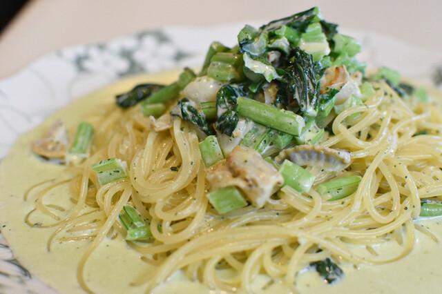 前菜はマグロの燻製と、スズキのフリットを1つずつ、パスタもタラと春菊のクリームソースと、小エビと小松菜のオイルソースを1つずつお願いしました。