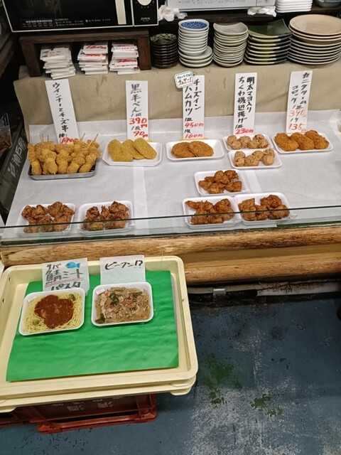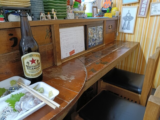 店内ショーケースにある刺身や惣菜を呑みスペースで食べられるが事前に申告すること、