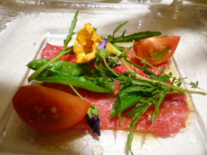 ナスタチウムやマローやらハーブが香り、薄く切った和牛がつるんと喉に入ります。