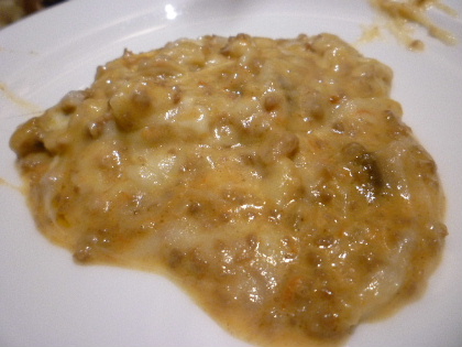 【マッシュポテト&ひき肉モッアレラチーズのカレー風味グラタン】