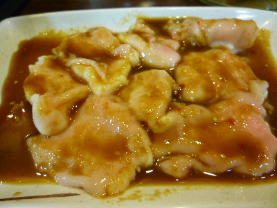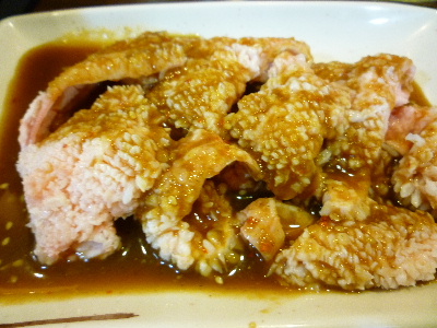 【生せんまい】見たことが無い物・・・恐る恐る赤っぽいタレにつけて・・・酸っぱ辛くて美味しい〜♪