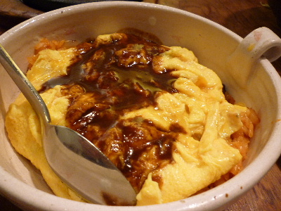 昔風は楕円形のスタンダードなオムライス・・・なのかな?
