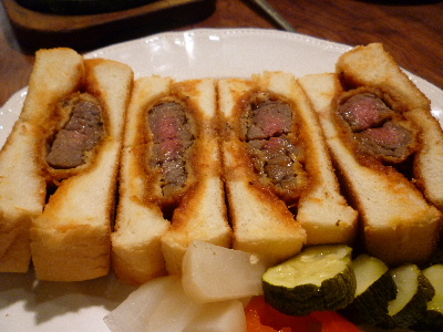 パリッとトーストしたパンに挟まった分厚く柔らかいお肉ちゃん♪旨〜♪