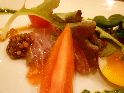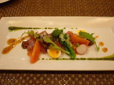 この日は2階を貸切、無理言ってシェフに特別コースを作っていただきました。