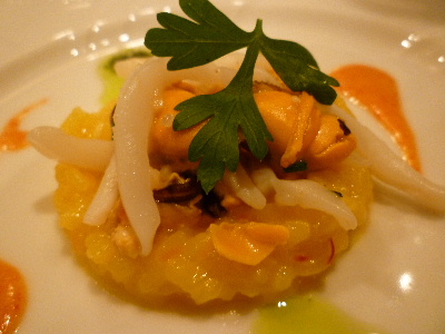 【剣先イカとモンサンミッシェルのムール貝のリゾット】