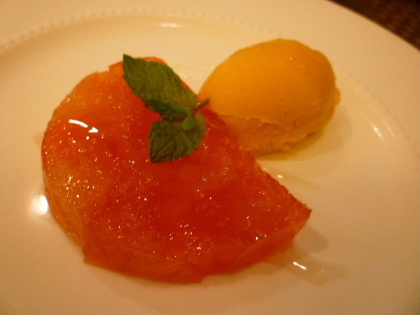 【シャンテーヌのはいったクリームブリュレ赤砂糖のアイスクリーム添え】
