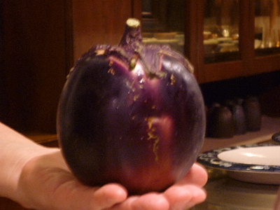 この加茂ナスはこんなんだよ〜と見せてくださいました。