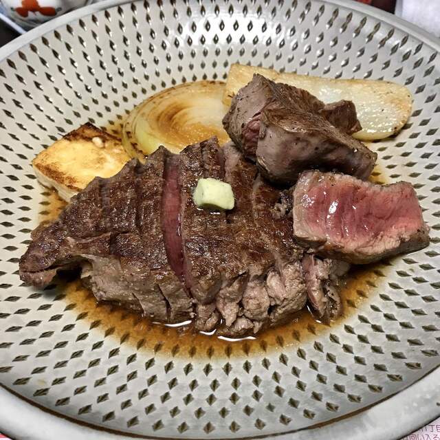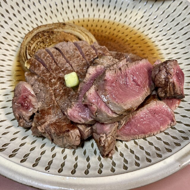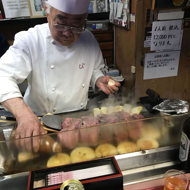 メニューは、ヒレステーキと付け合わせとサラダのみ@12,000円税込。ドリンク別料金。現金払いのみ。